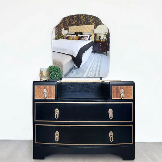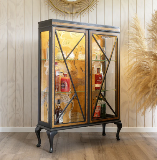 Beautility Black and Gold Art Deco Style Cocktail Cabinet
