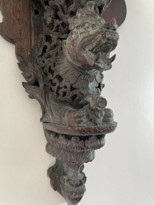 A beautifully carved East Asian wall shelf