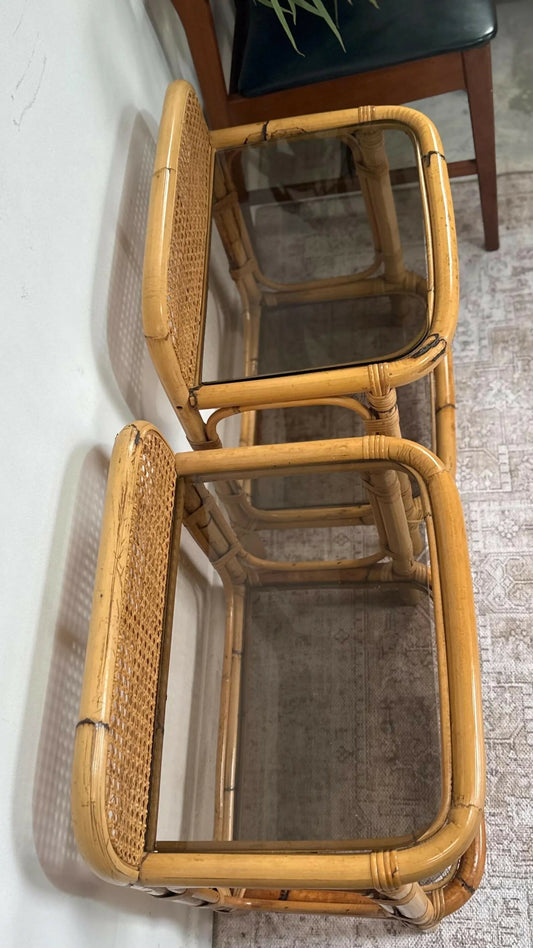 Mid century retro vintage bedside table bamboo glass scandi boho
