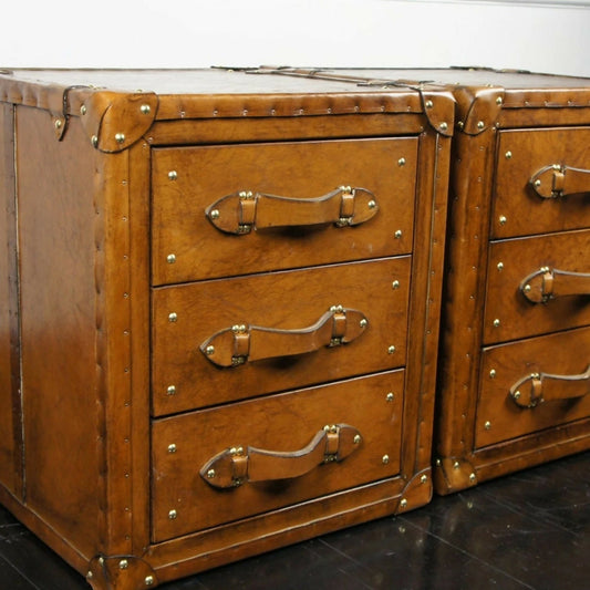 Hand Dyed Tan Leather Handmade English Night Stands Vanities Bedroom Furniture