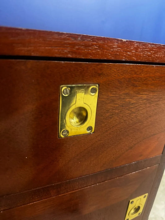 Vintage Oak Bedside Cabinet Table Covered Bedside Military Campaign Style