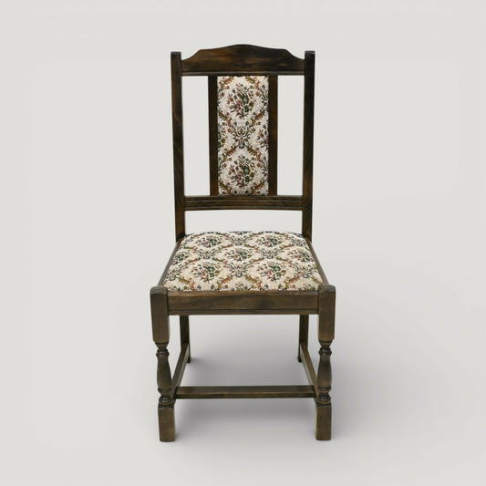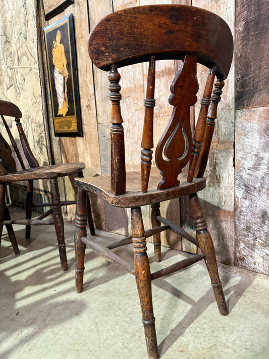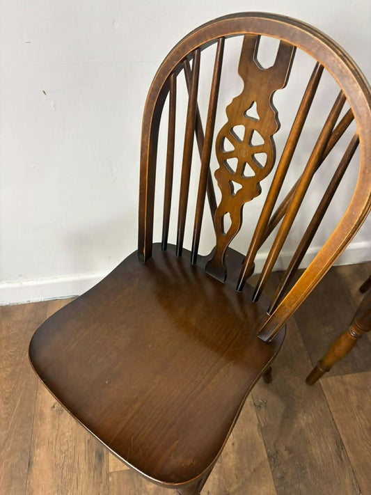 Set of 4 Vintage Wheel Back Dining Chairs – Solid Wood – Carved Backrest