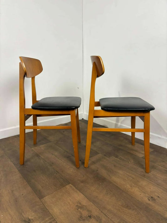 Pair of Mid Century Teak Chairs with Black Upholstery