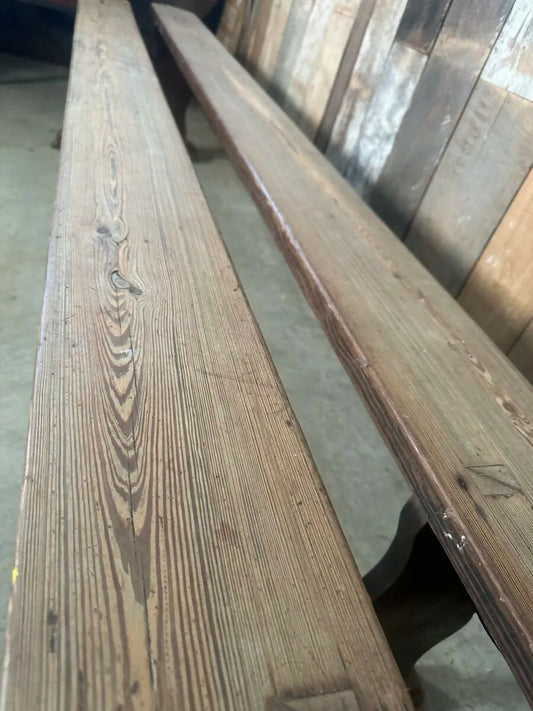 Antique Pair French Pine Long Benches Pews, c 1860