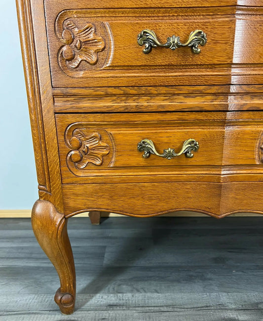 Chest of Drawers Antique French Style Marble Top Oak Carved Cabinet LOT 4808