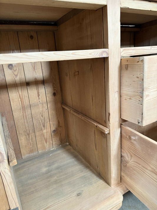 Antique Pine Lincolnshire Dresser Housekeeper Cupboard Drawers, c 1850