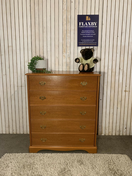 Vintage Stag Tallboy Chest – 5 Drawer Solid Wood Bedroom Storage, Retro Mid-Century Style