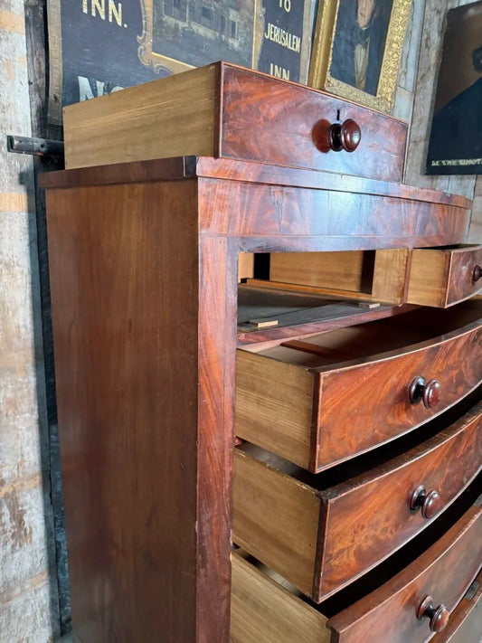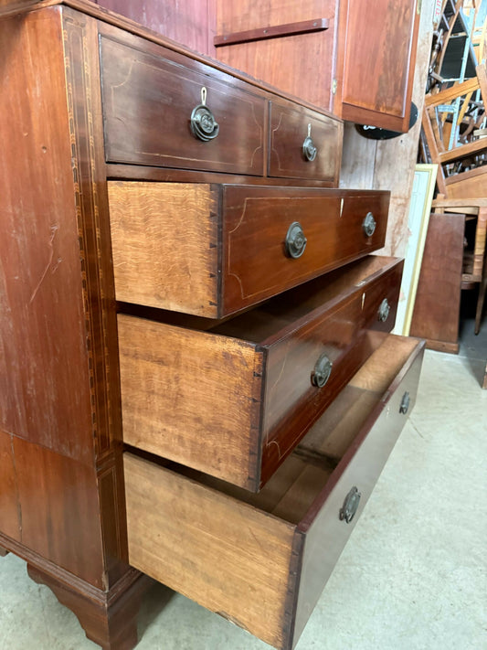Vintage Late Georgian Regency Mahogany Linen Press Tallboy Wardrobe Chest of Drawers, c1800