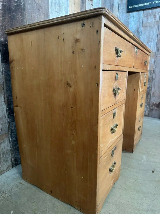 Antique Early Victorian Pine Kneehole Console Desk Table Drawers, c 1830