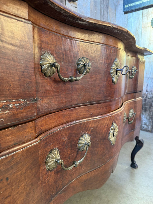 Antique French Chestnut Serpentine Commode Chest of Two Drawers, c1760
