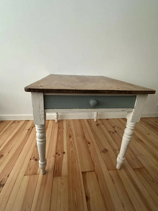 Antique Pine Farmhouse Kitchen Table Scrub Stripped Rustic Top With End Drawer
