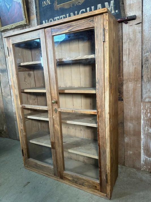 Vintage Victorian Pine Glazed Kitchen Pantry Hall Cupboard Cabinet, c 1880