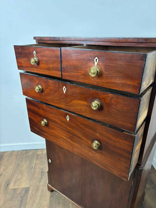 Georgian Mahogany Cabinet – Chest Over Cupboard (Two-Part Construction)
