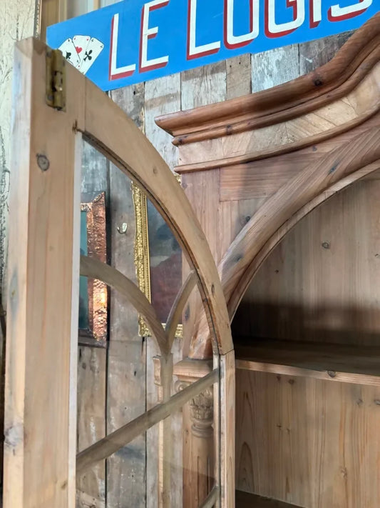 Vintage Large Pine Glazed Bookcase Cabinet Dresser