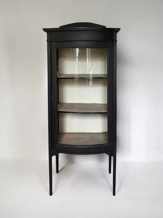 Antique Victorian Bow Fronted Black Painted Glazed Display China Cabinet