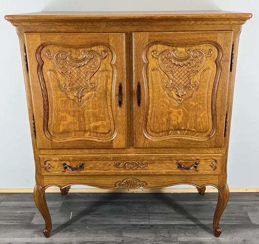 Cabinet Vintage French Louis XVI Oak Carved Cupboard with 2 Drawers LOT 4460