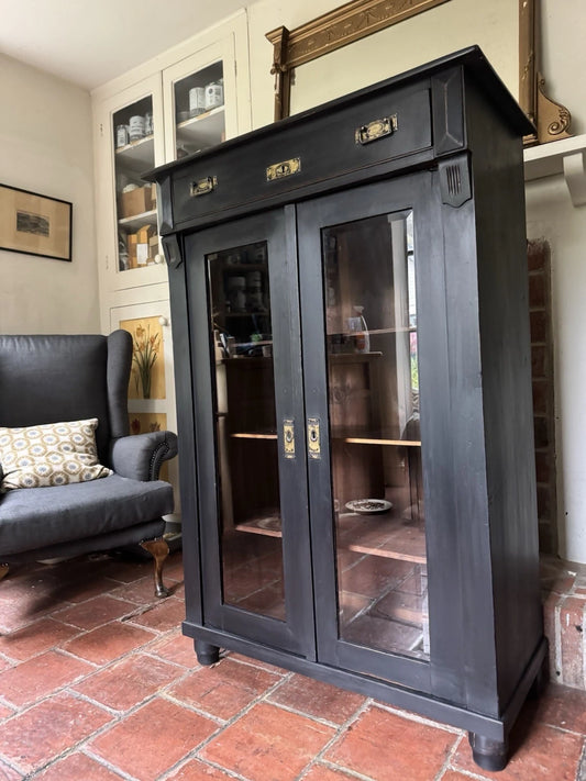 Antique Early 1900’s Mahogany Black Painted Display China Glazed Drinks Cabinet