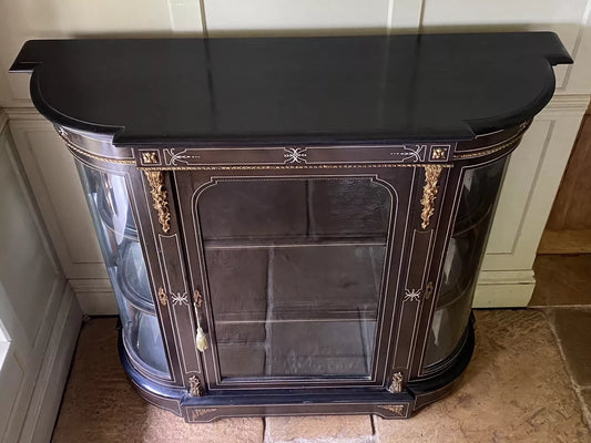 Antique Victorian Ebonised Ormolu Credenza Glazed Display China Cabinet