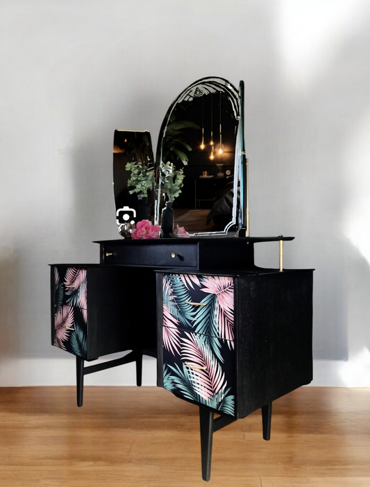 Vintage stag minstre pink floral dressing table, vanity table, pink, pink furniture, bedroom furniture, modern,mirror,stool,