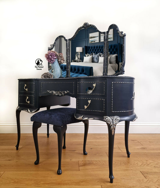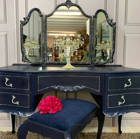 Navy Vintage Olympus French-style Dressing Table with mirror & stool