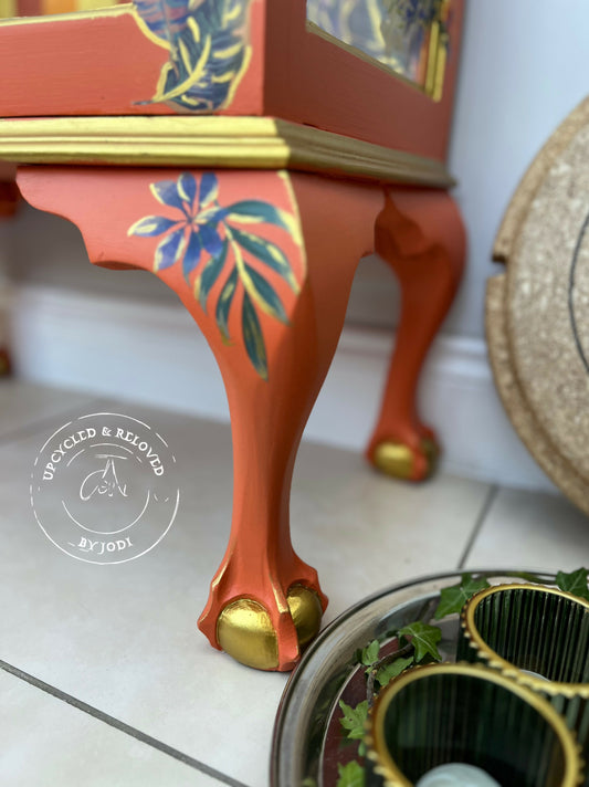 NOW SOLD-Orange & Gold Tropical and striped Cocktail Cabinet/ Drinks Cabinet