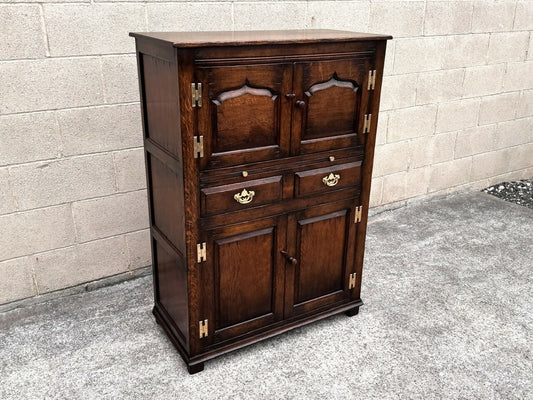 A TITCHMARSH AND GOODWIN SOLID STRESSED OAK WINE CUPBOARD / DRINKS CABINET.