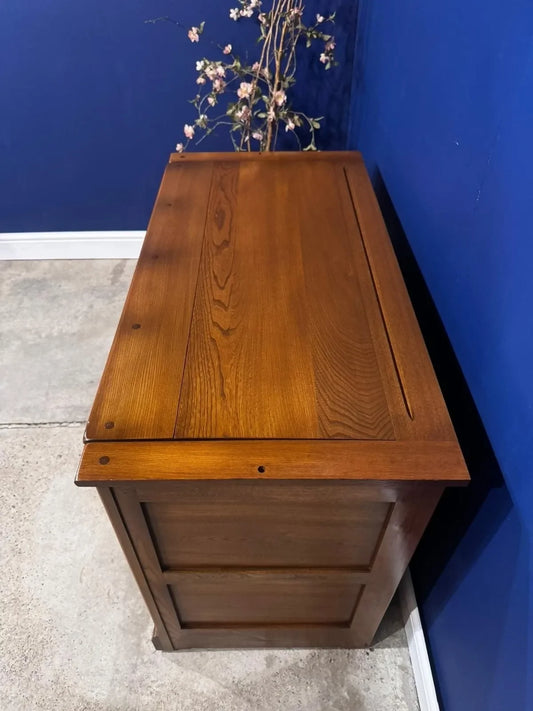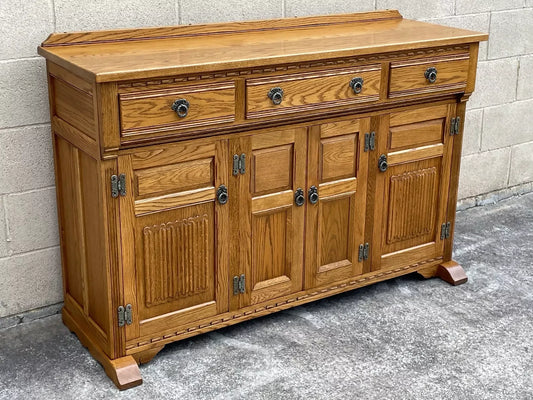 A WOOD BROTHERS OLD CHARM VINTAGE CARVED OAK SIDEBOARD / DRESSER BASE.