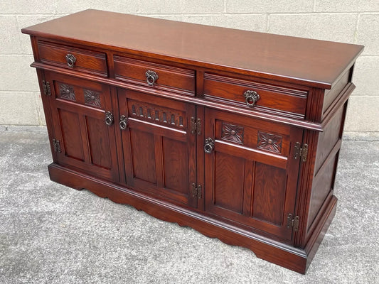 A WOOD BROTHERS OLD CHARM TUDOR BROWN CARVED OAK SIDEBOARD / DRESSER BASE / CUPBOARD / CABINET.