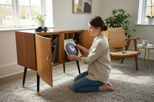 Vintage Upcycled Mid Century Record Storage Cabinet