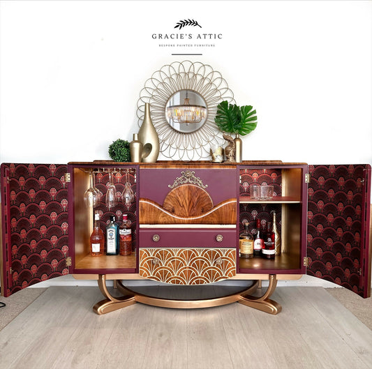 Art Deco Cocktail Cabinet, Drinks Cabinet, Beautility Cocktail Bar, Retro MCM Walnut Cabinet