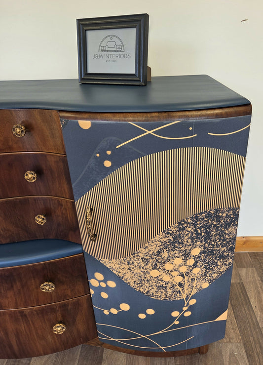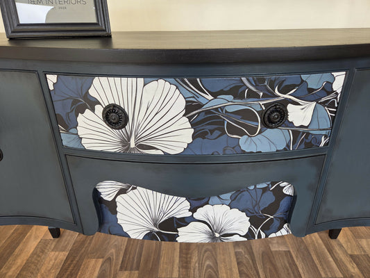 Blue decoupaged Serpentine sideboard/ cabinet/unit/bar