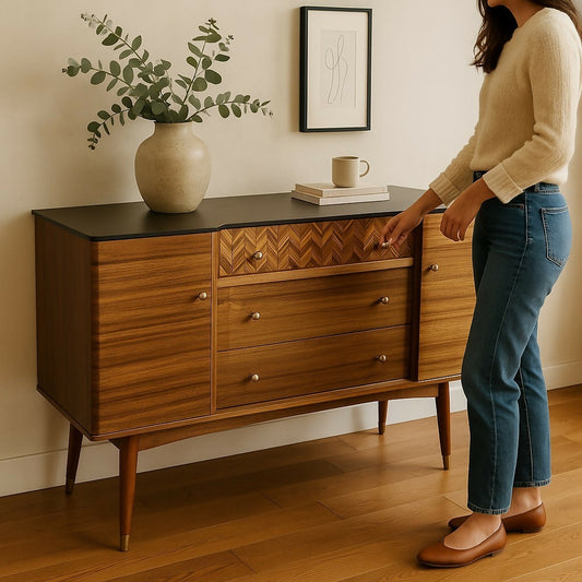 Stunning Sideboard & Drinks Cabinet, all in one! Art Deco, Walnut Woodgrain, Rare Design