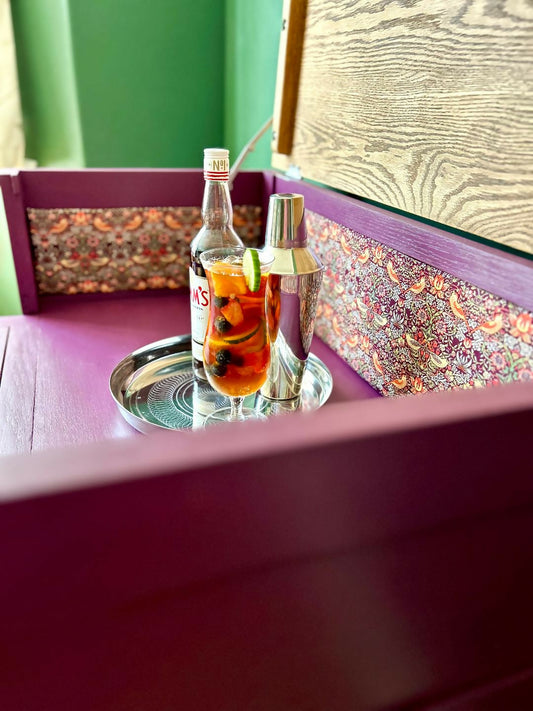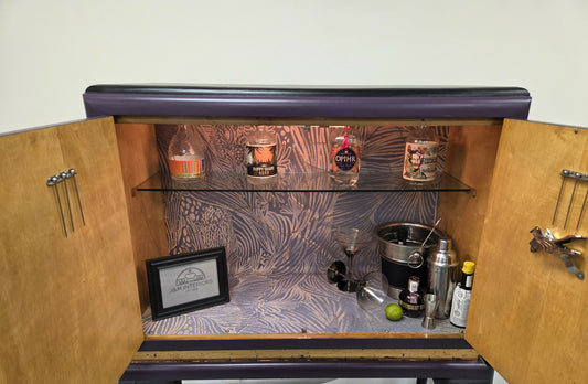 Purple Drinks Cabinet with Bespoke Fabric Interior
