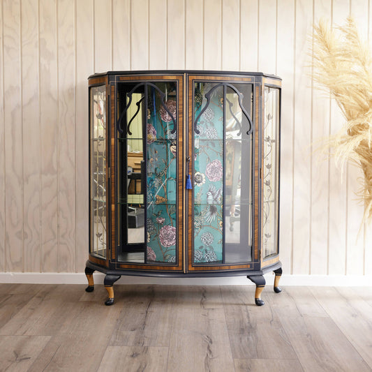 An exquisite vintage cocktail cabinet decoupaged in a subtle blend of black and red Japanese blossom fabric. Sold, commission available.