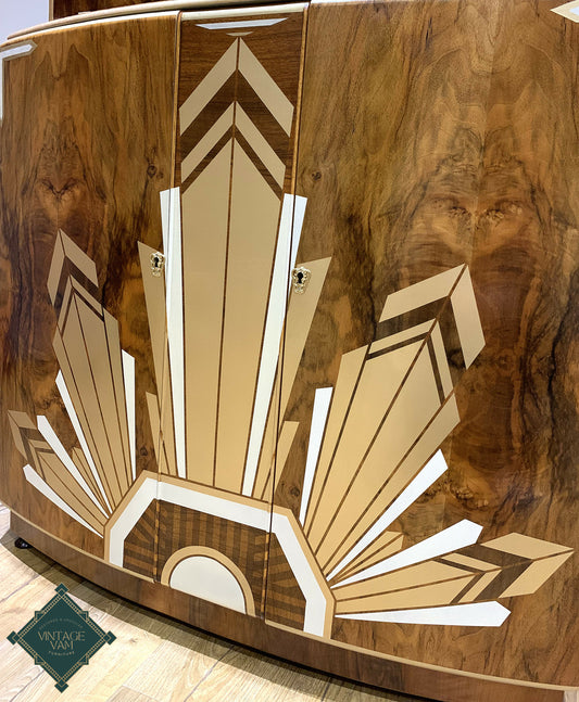 Vintage Cocktail Cabinet, Walnut Cocktail Cabinet, Art Deco