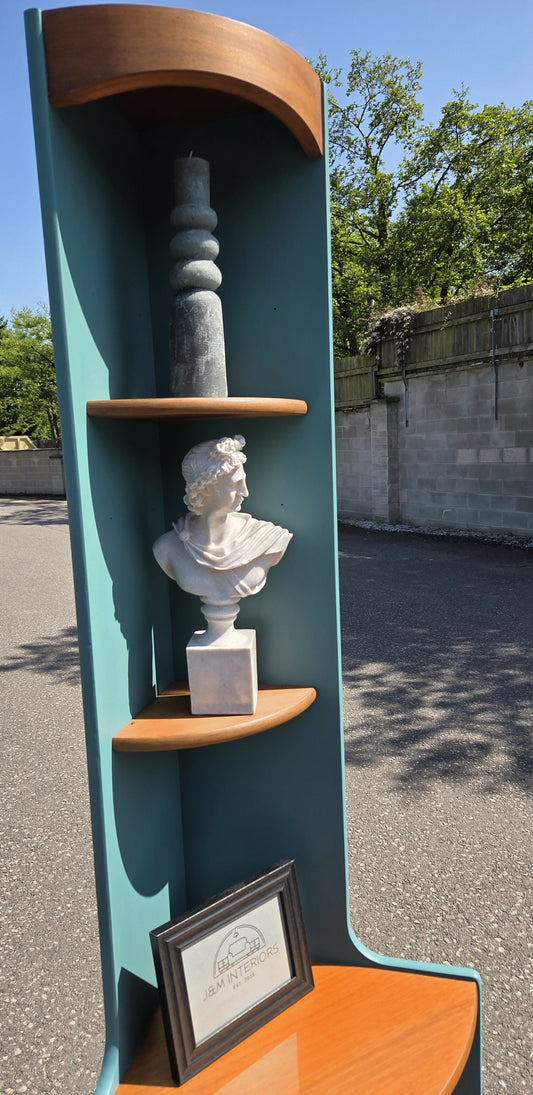 Nathan squares vintage Parker-Knoll Teal/Blue bird decoupaged corner cabinet/shelves/drinks cabinet