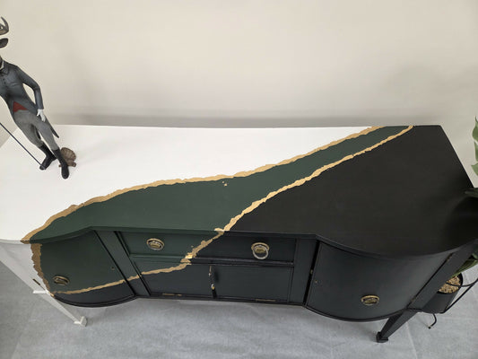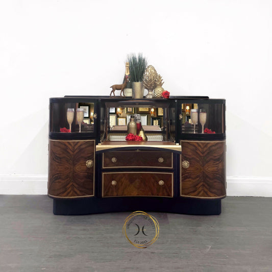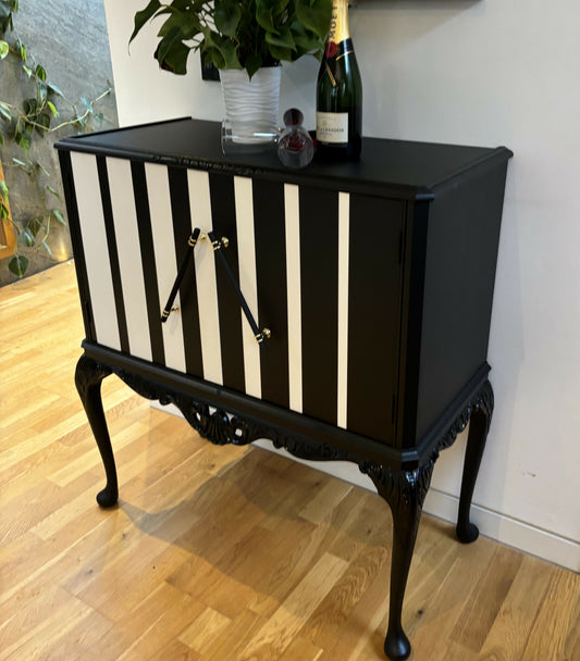 SOLD! Queen Anne Drinks Cabinet in Matt Black, Gloss Black, White and Gold