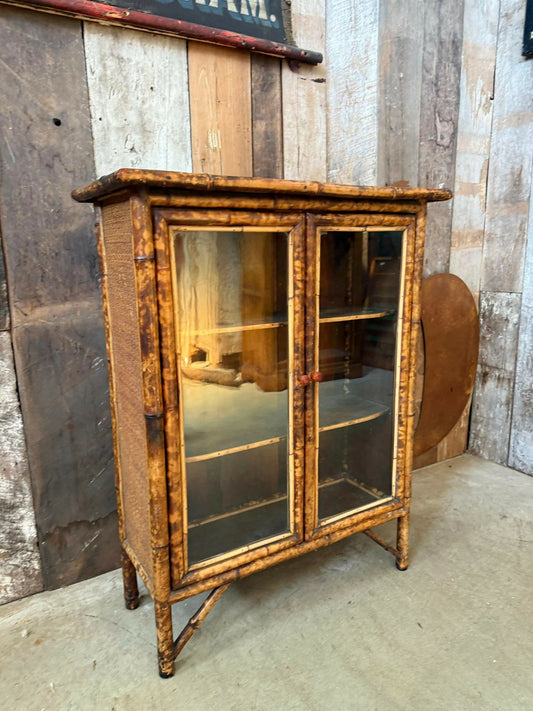 Antique Victorian Aesthetic Period Bamboo Glazed Two Door Hall Cupboard, C1880