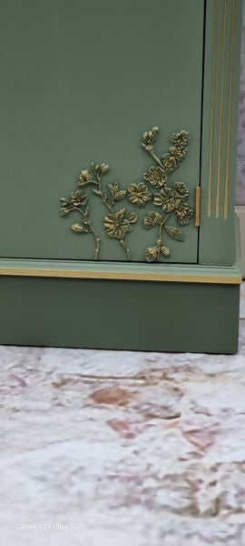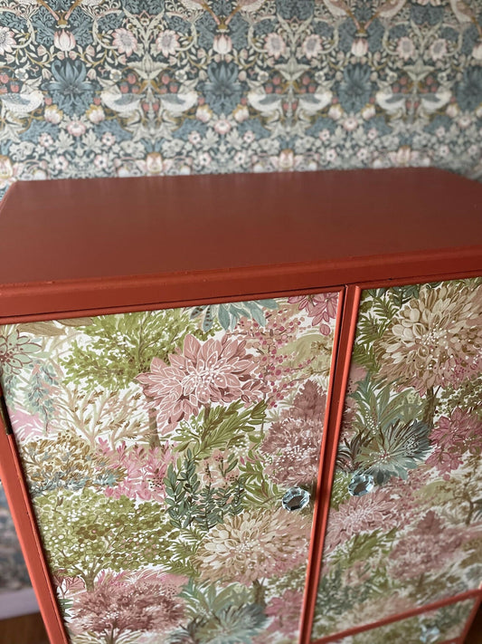 Refurbished Tan Rust Floral Tree Pink Olive Green Tallboy Cabinet Olive Upcycled
