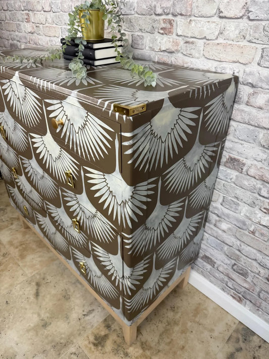 Stunning Hand-Painted Chest of Drawers in Unique Art Deco Style – A True Statement Piece”