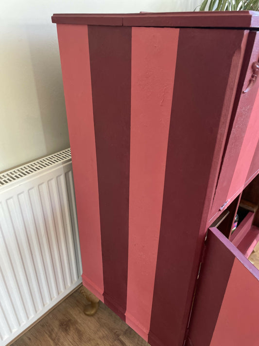 Vintage Distressed Burgundy & Pink Striped Cocktail Drinks Cabinet