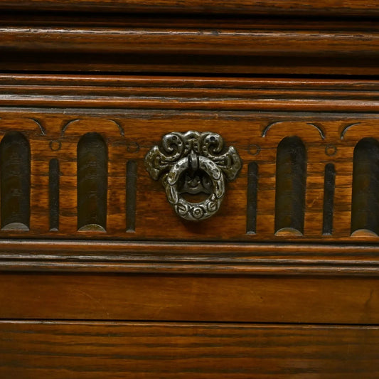 Antique gothic Carved Mahogany style sideboard Base with Mirror and Glass doors.