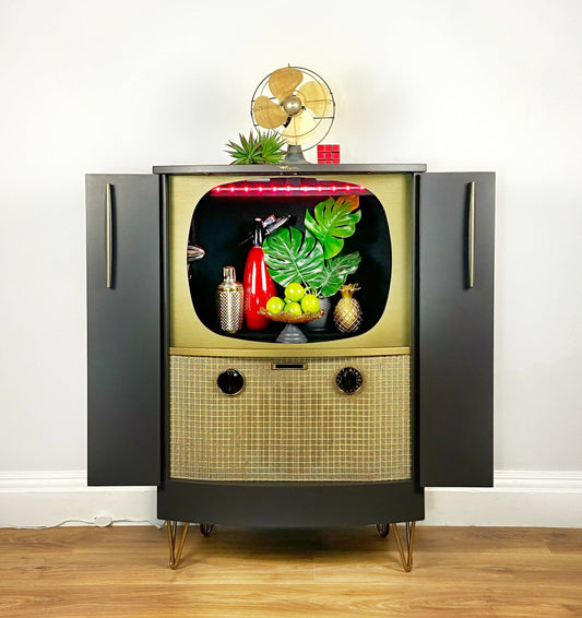 GIN CABINET *** made to order - Similar cabinets in stock *** - Vintage Antique Drinks Cocktail Cabinet in black and pink