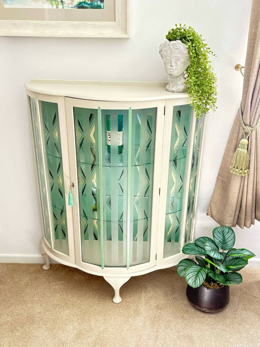 MADE TO ORDER: Vintage Art Deco Painted Glass Display/Drinks Cabinet