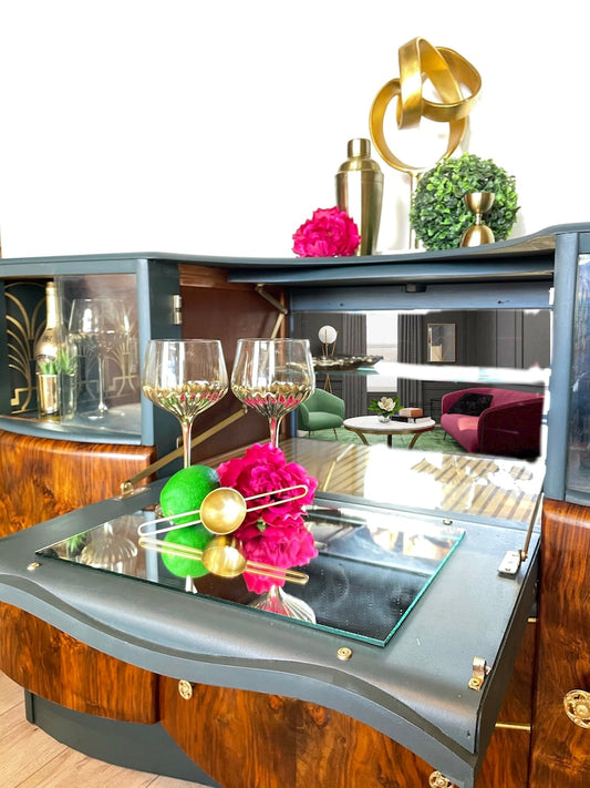 Gigi | Art Deco Vintage Cocktail Cabinet | Antique Upcycled Queen Anne Drinks Cabinet | Gin Bar Storage | Black Home Bar Furniture