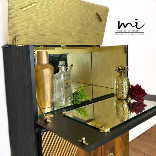Made To Order Refurbished Art Deco cocktail cabinet, walnut drinks cabinet, black and gold, gin bar