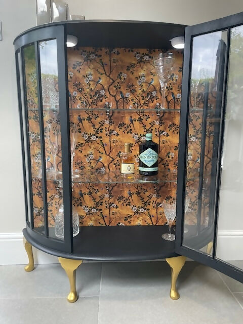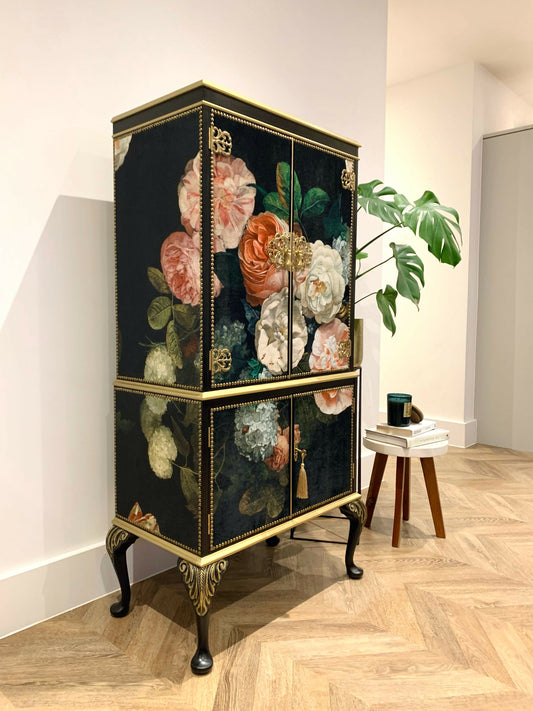 Luxury Dark Florals Velvet Drinks Cabinet/ Gin Cocktails Bar Cabinet