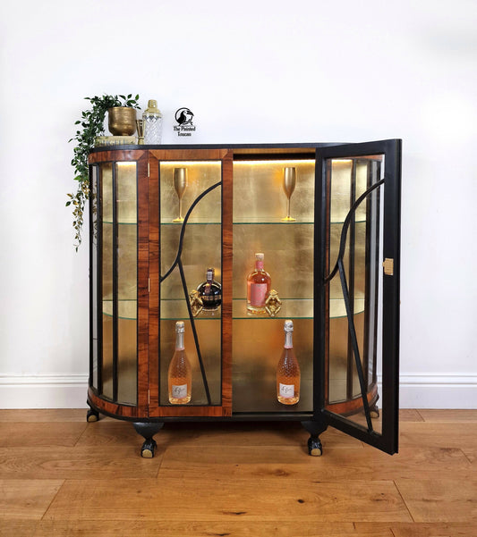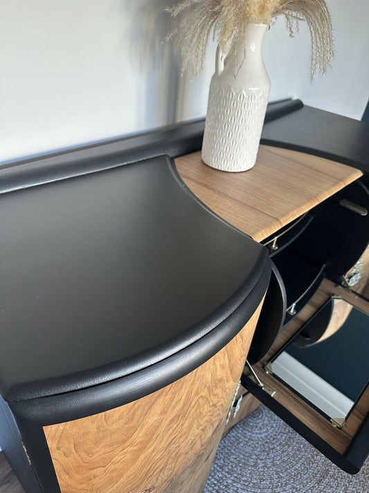 Vintage Art Deco drinks cocktail cabinet, black and gold