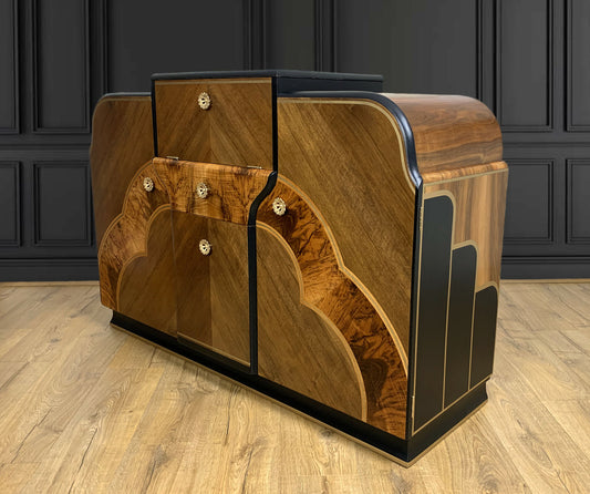 Art Deco Walnut Cocktail Cabinet, Vintage Drinks Cabinet.