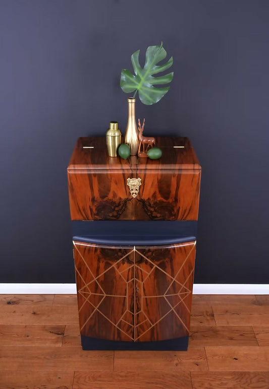 Art Deco Walnut Cocktail Cabinet, Vintage Drinks Cabinet.